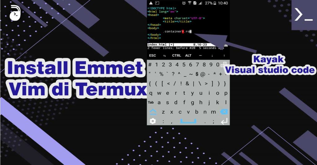 Plugin emmet vim biasanya digunakan pada komputer kususnya linunx envirovment. Tapi sekarang kita juga bisa gunakan di hp android dengan bantuan aplikasi termux.